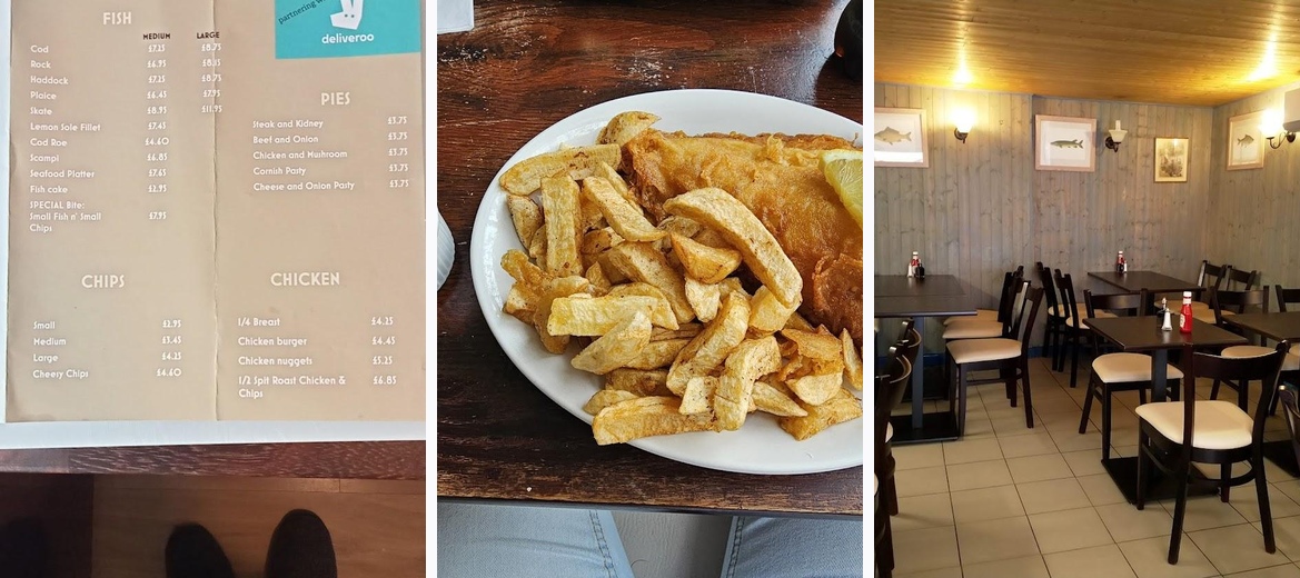 Loved this chip shop! Huge portion of Cod & Chips £11.20! More than I could eat. Crisp chips, fresh & chunky cod. Staff are so friendly, & nice. Shop & restaurant are spotlessly clean. Highly recommend! 😋
